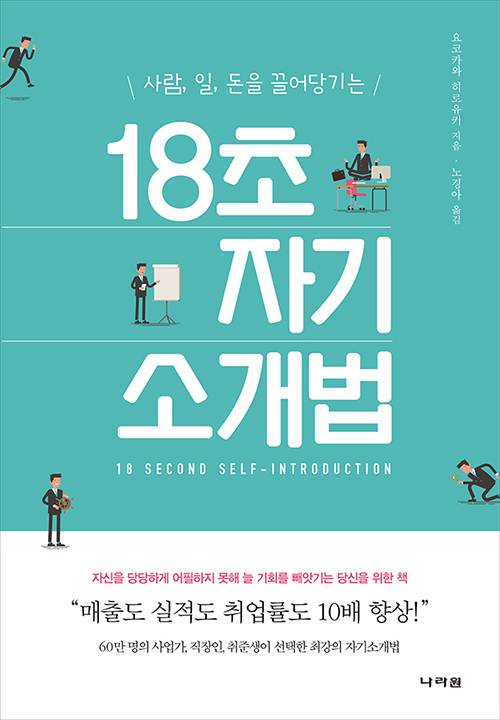 이 책의 저자 요코카와 히로유키는 자기소개 코칭 전문가로, ‘일본 최고 점심 모임’이라는 교류회를 2010년 4월부터 전국 19개 지역에서 150회 이상 개최했다. 이 모임엔 업계를 주도하는 100명 이상의 쟁쟁한 강사들이 그와 생각을 같이해 객원 강사로 참여해왔으며, 그는 여기서 얻은 자기소개 노하우를 요약하여 독자적인 ‘18초 자기소개법’을 고안해냈다. 그 결과 말솜씨가 부족하거나 낯가림이 심하고 자신감이 부족한 사업가나 직장인, 취준생 등으로부터 큰 호응을 불러일으켰다.